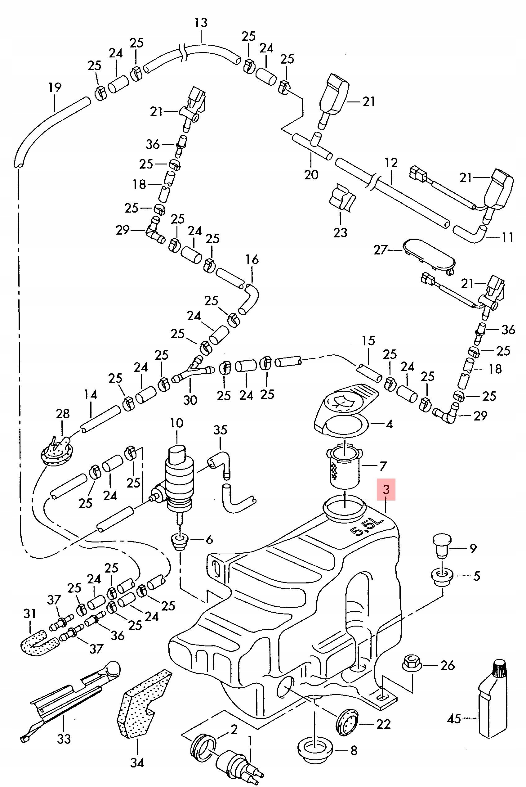 VW GOLF IV AUDI A3 8L / ZBIORNIK ZBIORNICZEK PŁYNU SPRYSKIWACZY
